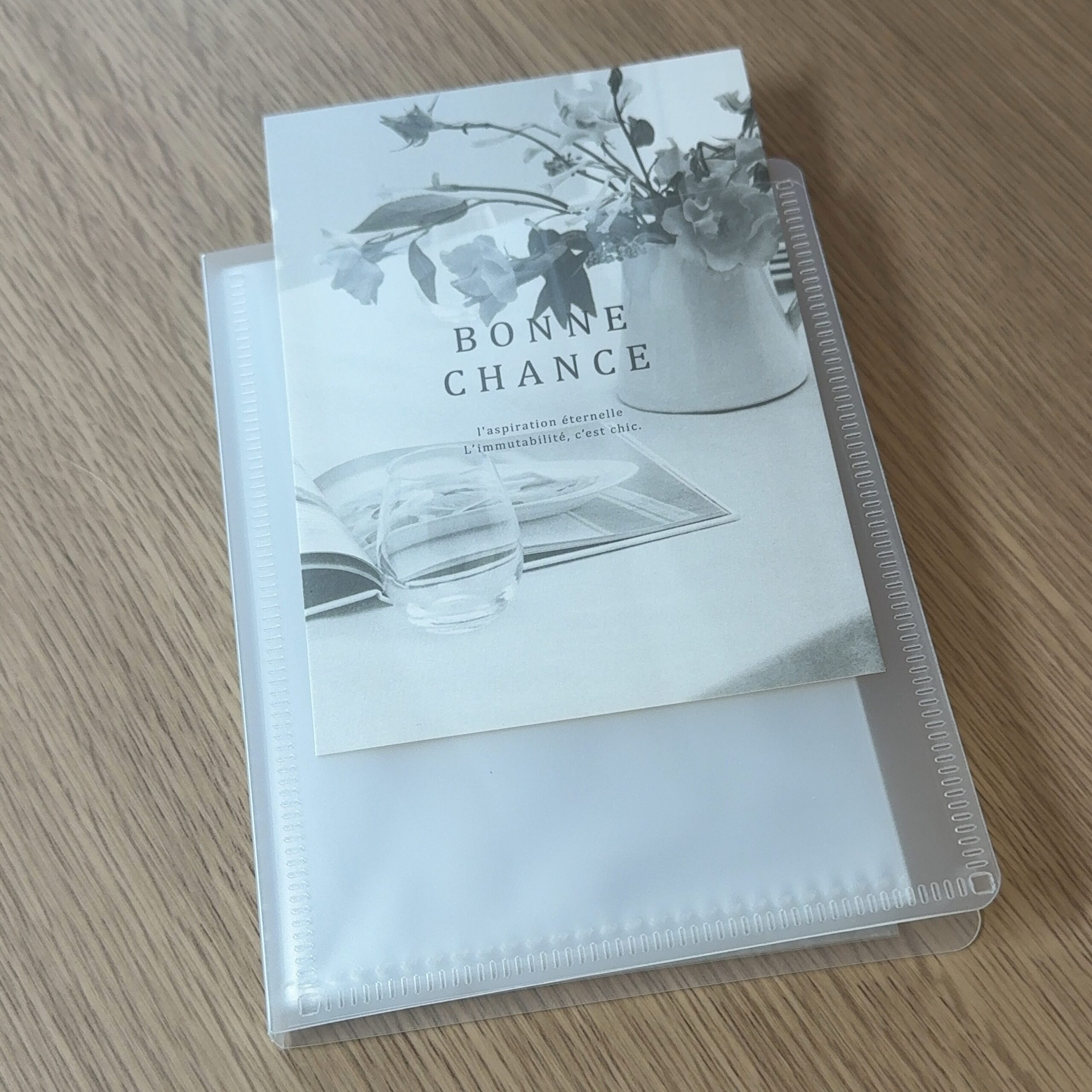 表紙ポケットがあるので、推しの写真を入れたり、デザインペーパーを切って差し替えたりと、その時の気分でアレンジできるのも楽しいポイント。